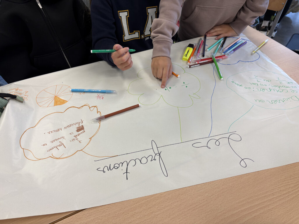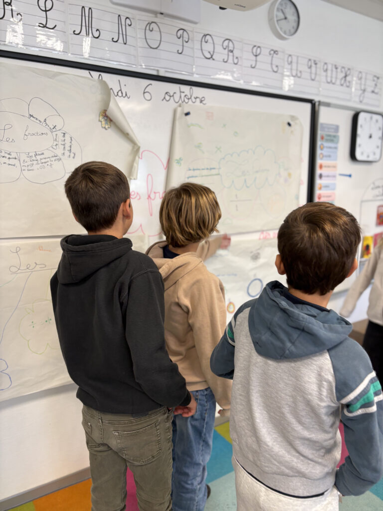 Working in small groups, the students explored various representations of fractions, such as diagrams, drawings, definitions and keywords. Each student was able to express their understanding and contribute to the group’s understanding. This collective work enabled everyone to develop their own interpretation of fractions using both mathematical language and observation.