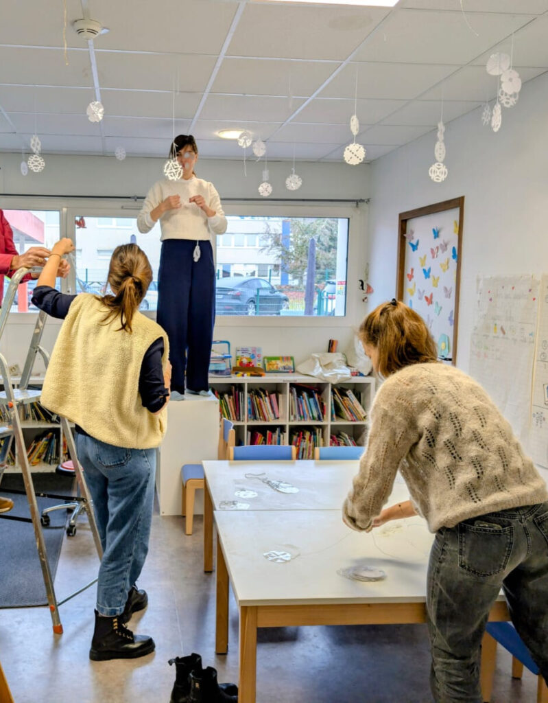 On Monday morning, when the children arrived, they were amazed to discover this magical atmosphere: sparkling garlands, decorated Christmas trees, and carefully placed little details immediately immersed the whole community in the Christmas spirit. It was a moment of surprise and joy shared by all!