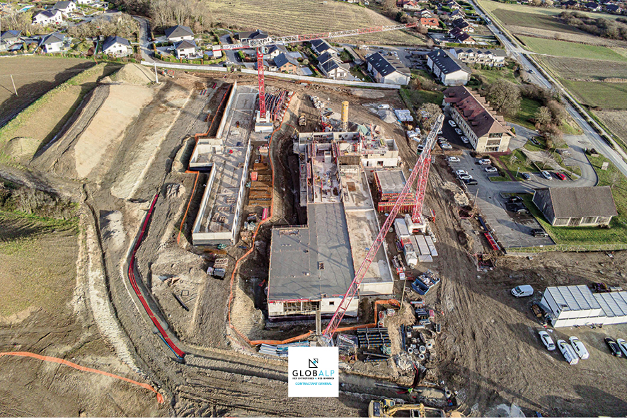 Plus haut, Globalp a déjà débuté les fondations du bâtiment qui hébergera les locaux de l’élémentaire et du collège.